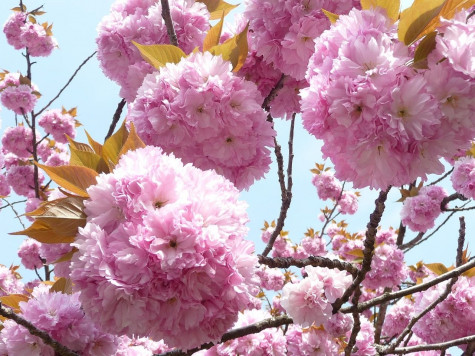 この時期、先日お伝えしたソメイヨシノは新緑の若葉に変わっておりますが、玄関前の八重桜が見事な花を咲かせています。