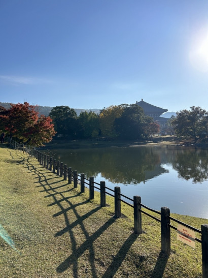 鹿さんが紅葉狩りをしてる風景も奈良ならではの情景です。