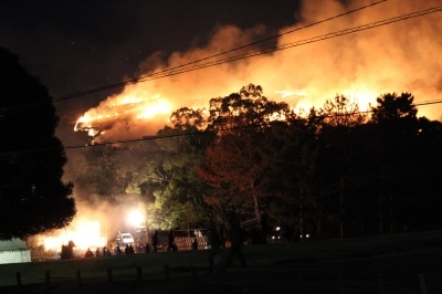 18時15分に打ち上げ花火が上がり、その後18時30分から若草山の山肌に松明の火が注がれます。