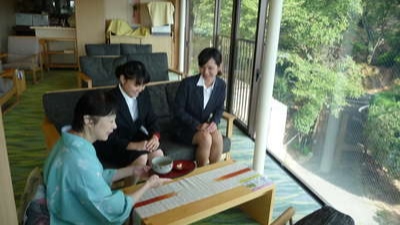 …→ この三日間フロント業務を体験させていただいたのですが、三笠にリピーターさんが多いのは確実にこの理由だと思います!!!従業員同士がいつも冗談を言い合っているような仲の良い雰囲気が接客態度にも出ており、フロントは常に笑顔で溢れています!!私たち研修生も緊張でがちがちだったのですが、つられて笑顔になり緊張が緩みました~!