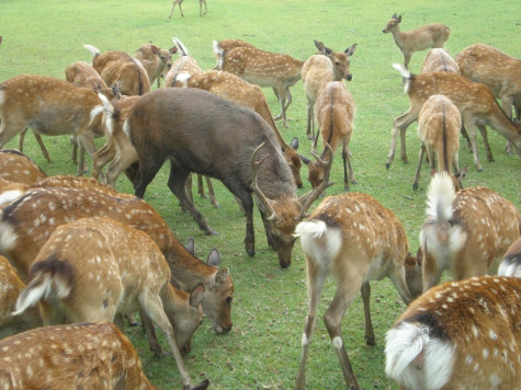 鹿寄せは、ナチュラルホルンの音色で鹿を呼び寄せる、奈良の風物詩です。