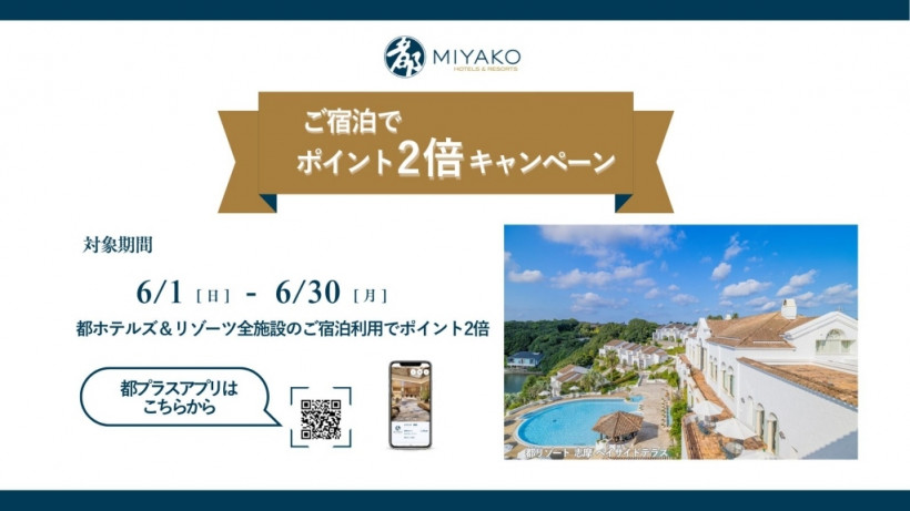 都ホテルズ&リゾーツでは、2025年6月1日(日)から6月30日(月)までの期間、「ご宿泊でポイント2倍キャンペーン」を実施します。