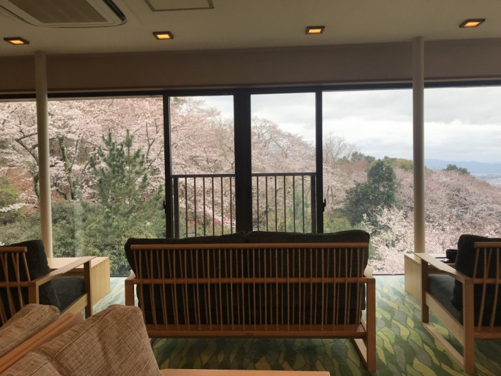夜桜は暖かいロビーやお部屋でお楽しみいただけます。