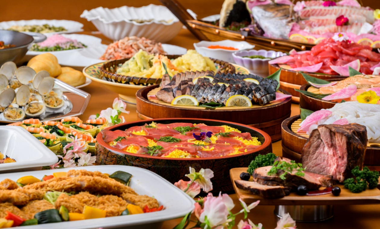 ファミリーやカップルにも大人気なブッフェと、落ち着いた雰囲気でゆったりとお召し上がりいただける会席料理をお選びいただけます。
