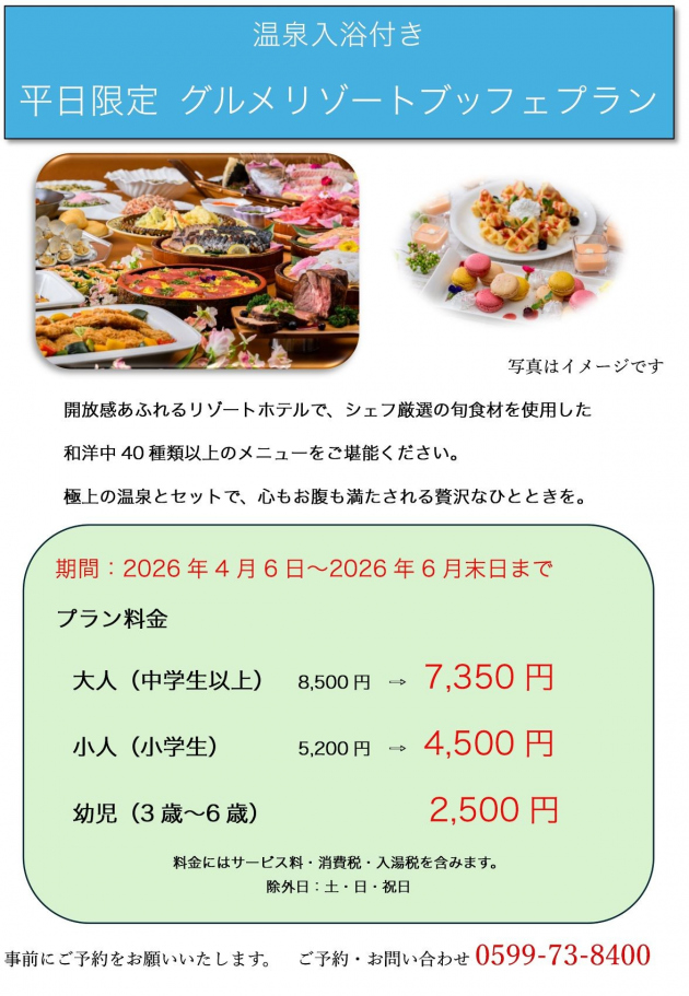 ※入湯税¥150(12歳以上)で伊勢志摩温泉「ともやまの湯」もご利用いただけます。