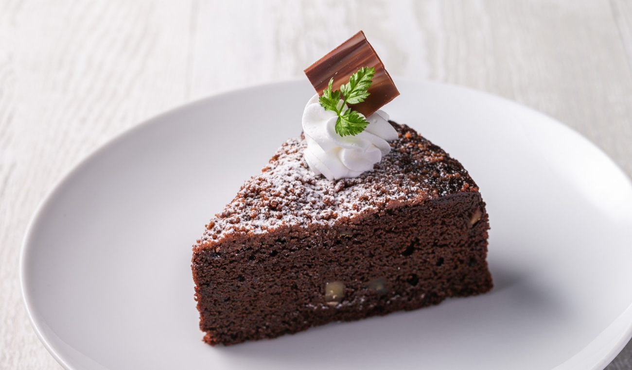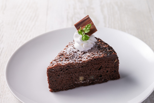 濃厚なガトーショコラに、やさしい甘さの練乳クリームをそっと乗せて、シックなマーブルチョコをトッピング。大人のための、落ち着いた彩りと味わいのバランスをお楽しみください。