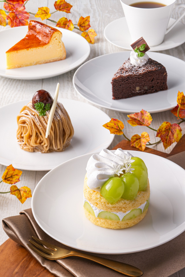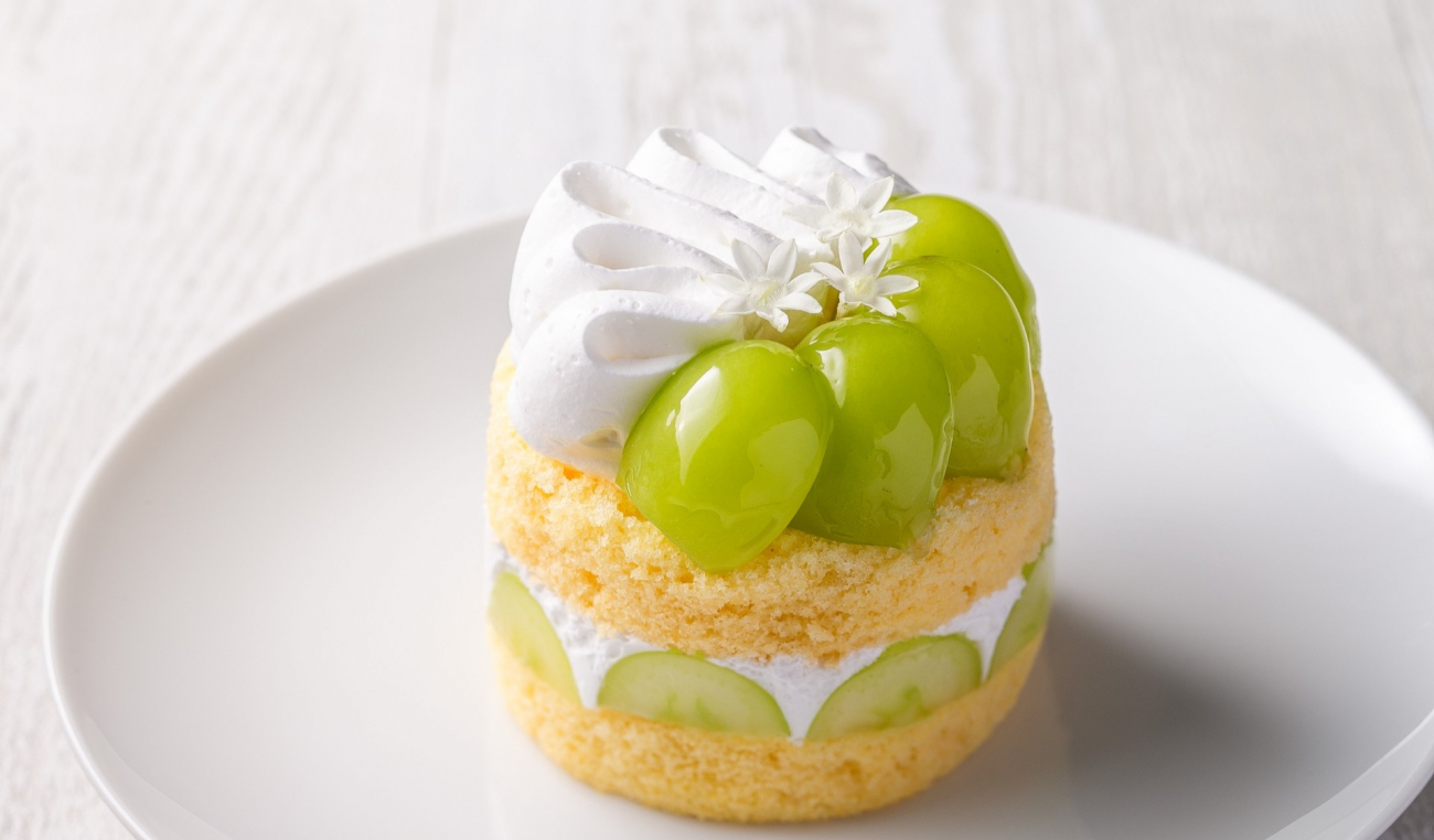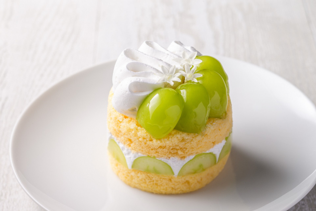 艶やかに輝くマスカットと、純白のクリーム。色彩のコントラストが美しく、カットした断面までうっとりするような仕上がりに。みずみずしい果実の甘さと、軽やかな口あたりのクリームが楽しめる、ベイサイドテラスのパティシエが贈る季節限定ケーキです。