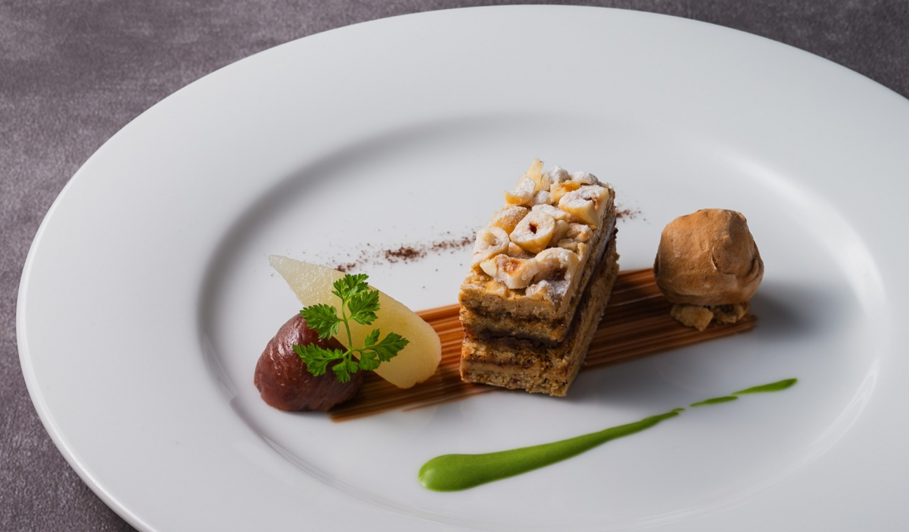 魚料理と肉料理のダブルメインが楽しめる冬のペルルコース。