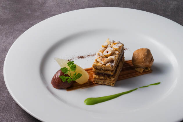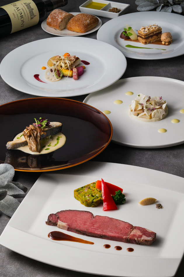 魚料理と肉料理のダブルメイン。ボリューム感と美しさを維持しながら、カジュアルにも楽しめるコースです。