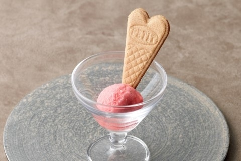 “よつぼし級”の甘み・酸味・風味・うま味を持ついちご『よつぼし』を、果汁も果肉もまるごと味わえるシャーベットに仕上げました。あえて裏ごしをせず、いちご本来のつぶつぶ感とみずみずしさを楽しめる、ベイサイドテラスオリジナルの一品です。