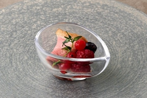 柔らかくローストした鴨胸肉に、ブルーベリーやフランボワーズ、グロゼイユなどのベリーを使ったソースを合わせました。鴨肉の濃厚な旨味とベリーの爽やかさが絶妙に調和し、食欲をそそる一皿です。