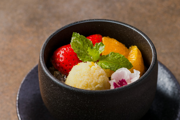■デザート 柚子シャーベット 果物 白ワインジュレ