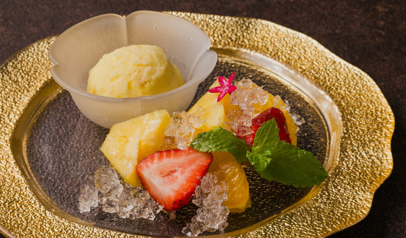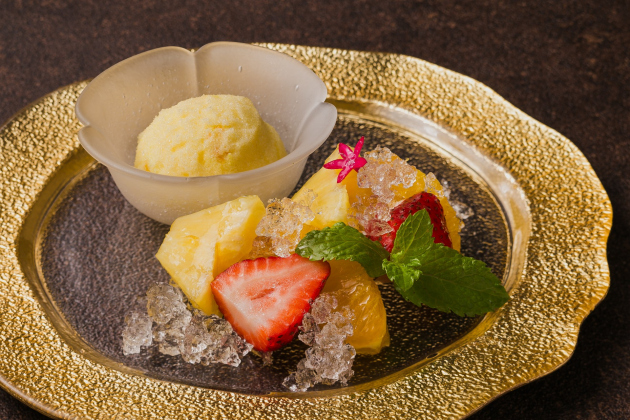 ■デザート 柚子シャーベット 果物 白ワインジュレ