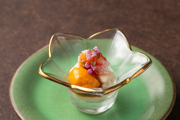 ■先付  蟹と汲み上げ湯葉の鼈甲餡かけ