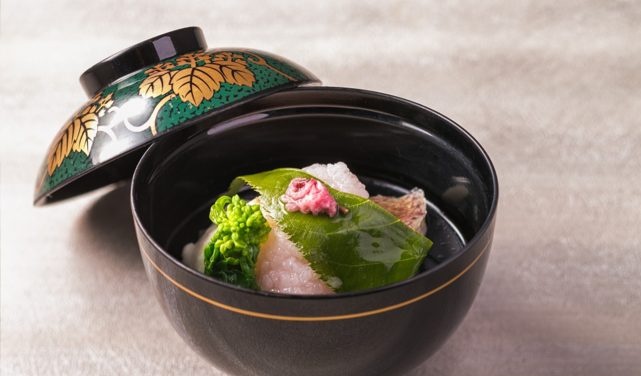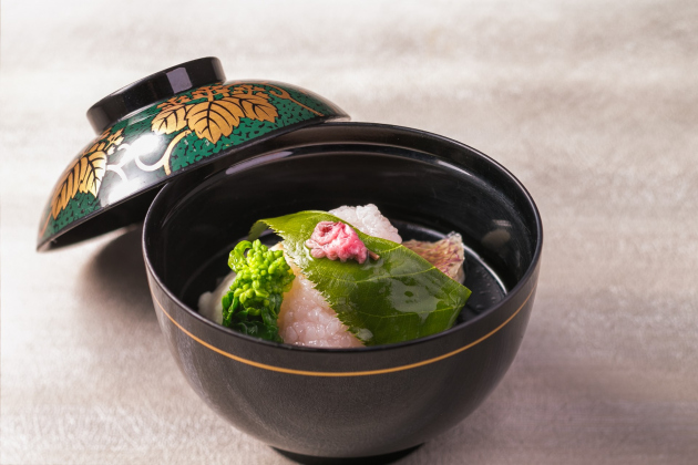 春の露草コースは、山椒の爽やかな香りが印象的な焼物『伊勢海老木の芽醤油焼き』、