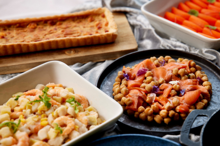 冷製料理 プチタルトレット/ブルスケッタ/タラモサラダ/キャロットラペ/スモークサーモンとエジプト豆/生ハムとブロッコリー/アボカ・オ・クルベット/セビーチェ/コールドミート