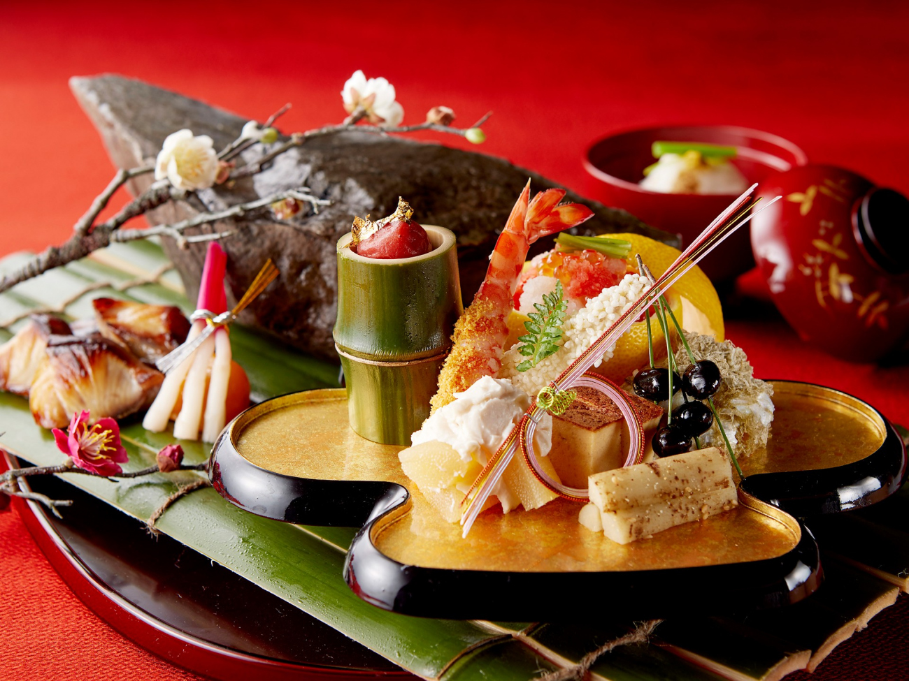 黒豆松葉 有頭海老芝煮 カステラ玉子