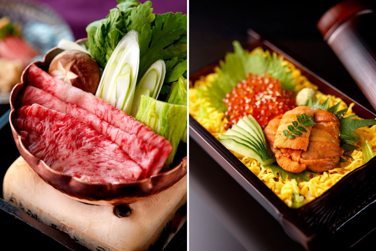「飛騨牛」を主役に、すき煮やローストビーフ寿司、かにみそ茶碗蒸しまで堪能できる、20周年を祝う特別御膳。
