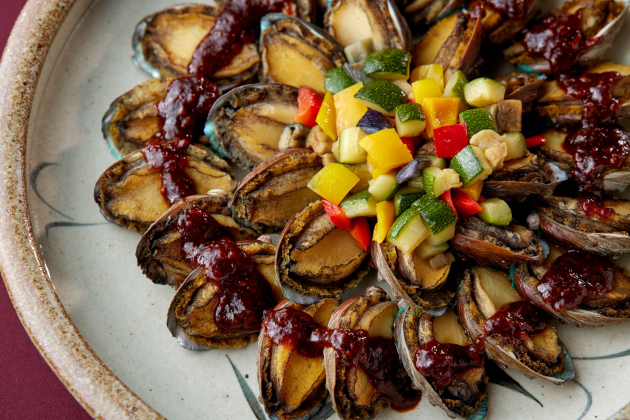 7月 鮑の煎り焼き 辛味ソース