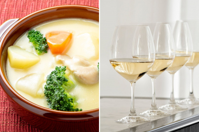 牛乳や生クリームを使った料理には、少しコクのある白ワインを。