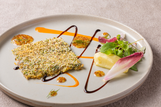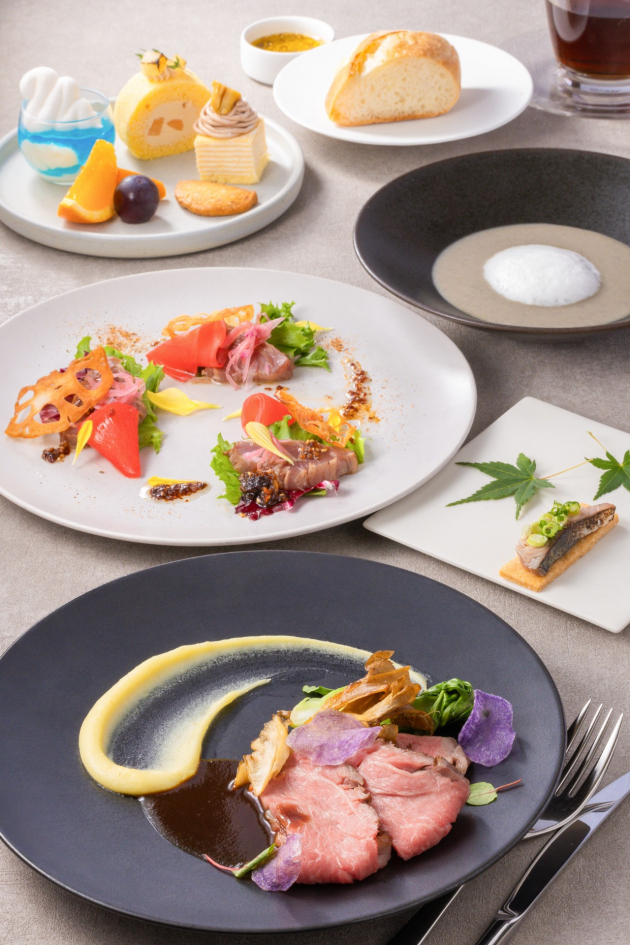アミューズとカラフルな前菜とお召し上がりいただいたあとは、メインを【国産牛のローストビーフ】または【秋刀魚の香草パン粉焼】からお選びいただけます。