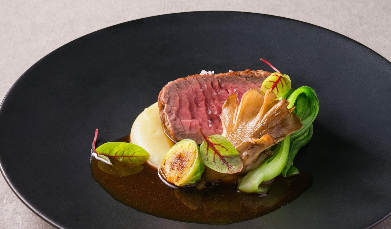 (+¥2,000でフォアグラのポワレ添え、+¥3,000で博多和牛フィレ 2種のソースに変更可能でございます)