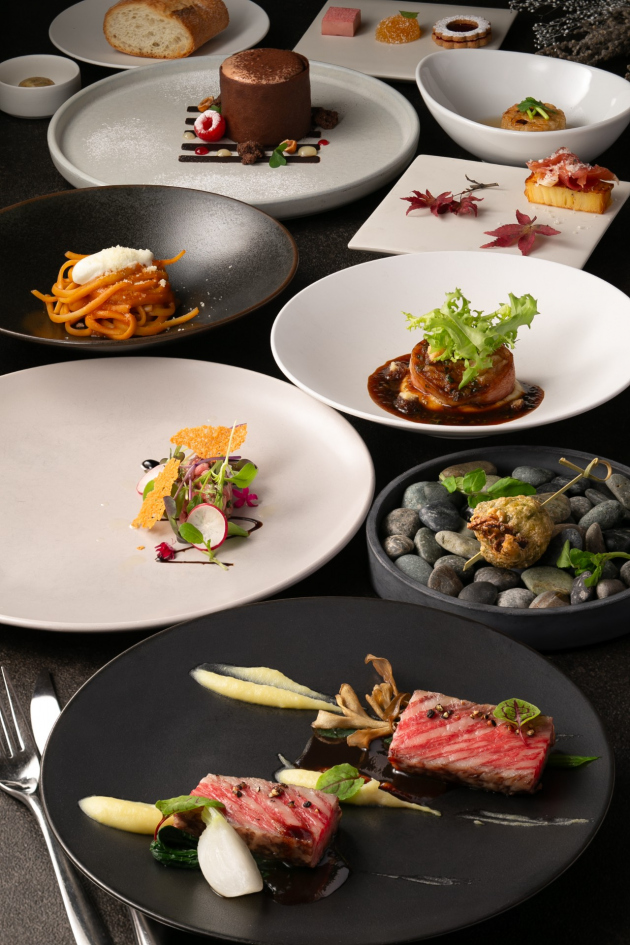 料理の一皿一皿に丁寧な技と食材の恵みを込めた夜のレコンパンスコース。