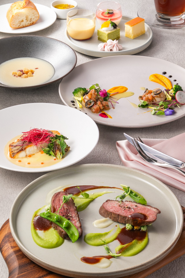 デザートは、パティシエ特製のワゴンデセール。季節ごとに作り上げる数種のスイーツの中から、お好きなものを、お好きなだけお召し上がりいただけます。