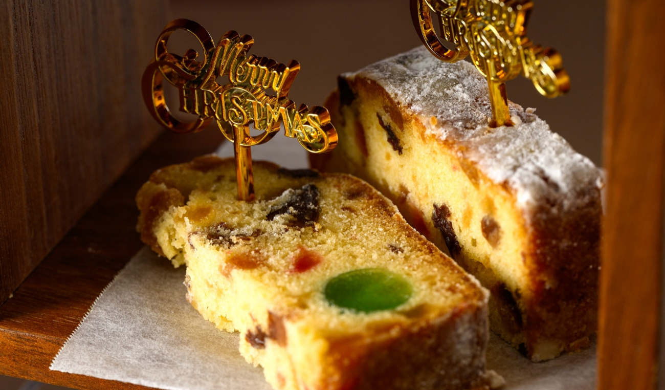 ◆ケークオフリュイ:ドライフルーツをたっぷりと練り込んだしっとり食感のフルーツケーキ。カラフルな断面が彩りをプラス。