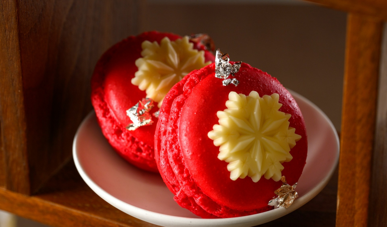 ◆あまおうのマカロン:鮮やかな赤色が目を引くあまおうのマカロン。ひと口ごとにやさしい甘みと酸味がふわっと広がります。