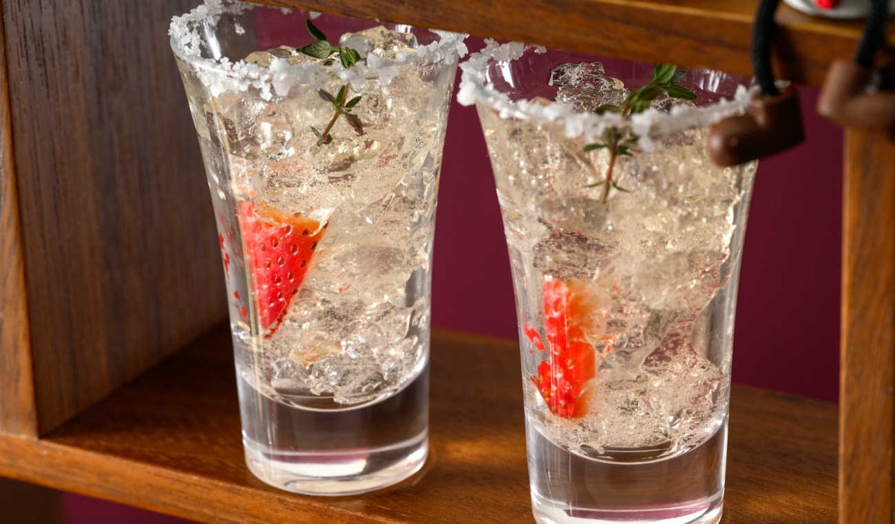 ◆シャンパンジュレ:シャンパンの上品な香りを閉じ込めたジュレにいちごをあわせた華やかなデザート。