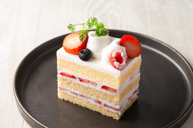 しっとりとした生地と甘酸っぱいいちごを組み合わせた、王道のショートケーキ。幅広い世代に広く愛されるオーソドックスなケーキを目指しました。