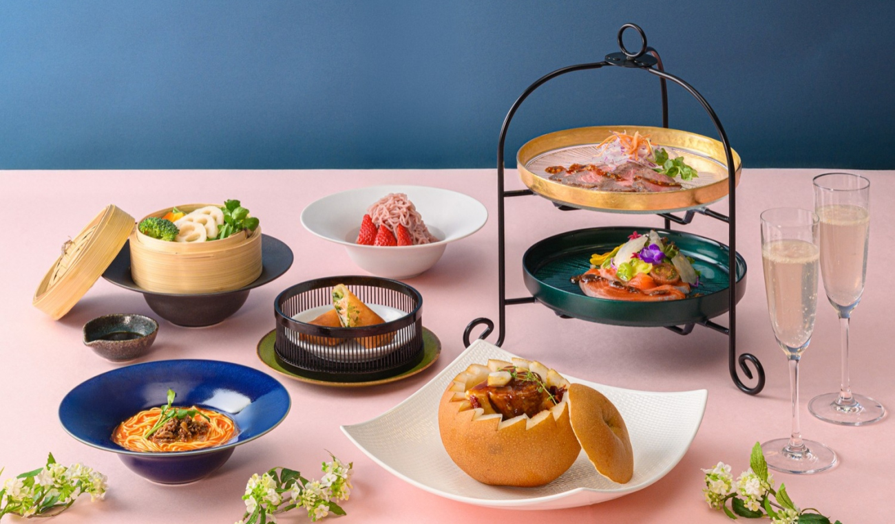 梨の生産が盛んな栃木県のオリジナル品種梨「にっこり」を器に見立てたインパクト抜群のポークステーキや、栃木県の特産魚「ヤシオマス」を前菜や春巻きにアレンジするなど、栃木県産食材を贅沢にとりいれたイブニングハイティーです。モダンチャイニーズと栃木県産の美味しい食材が融合したここでしか味わえない一品をお届けします。