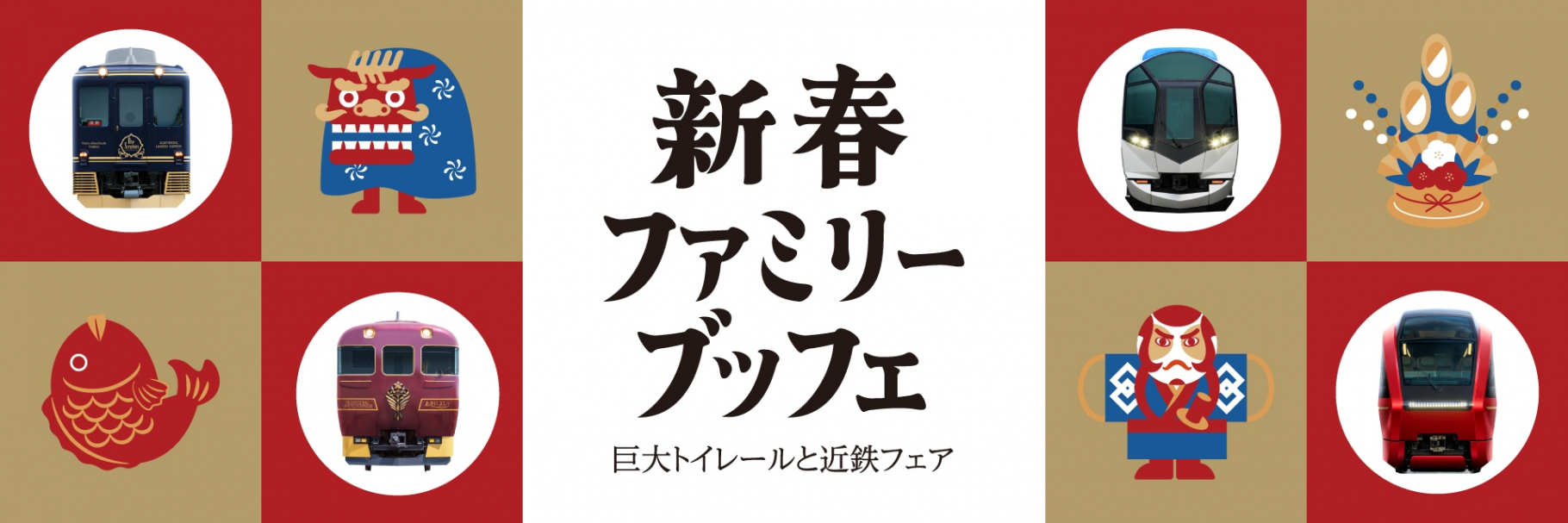 新年を彩るバラエティー豊かなブッフェ料理はローストビーフなど定番の人気メニューを中心に多数ご用意。毎年好評の巨大トイレール展示が今年も登場!近畿日本鉄道の駅員さんの制服で撮影できるキッズフォトスポットやお楽しみ抽選会など、大人からお子さままでお楽しみいただけるイベントが盛りだくさんです。新しい年の始まりは、ご家族、ご親戚揃って思い出に残る楽しい時間をお過ごしください。