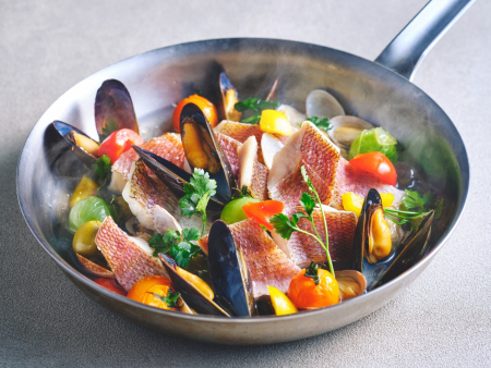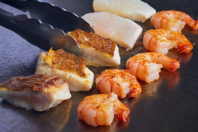 黒毛和牛のステーキ トリュフソース / メバルと海老の鉄板焼き ガーリックトマトソース / 桜鯛(真鯛)のしゃぶしゃぶ おろしポン酢