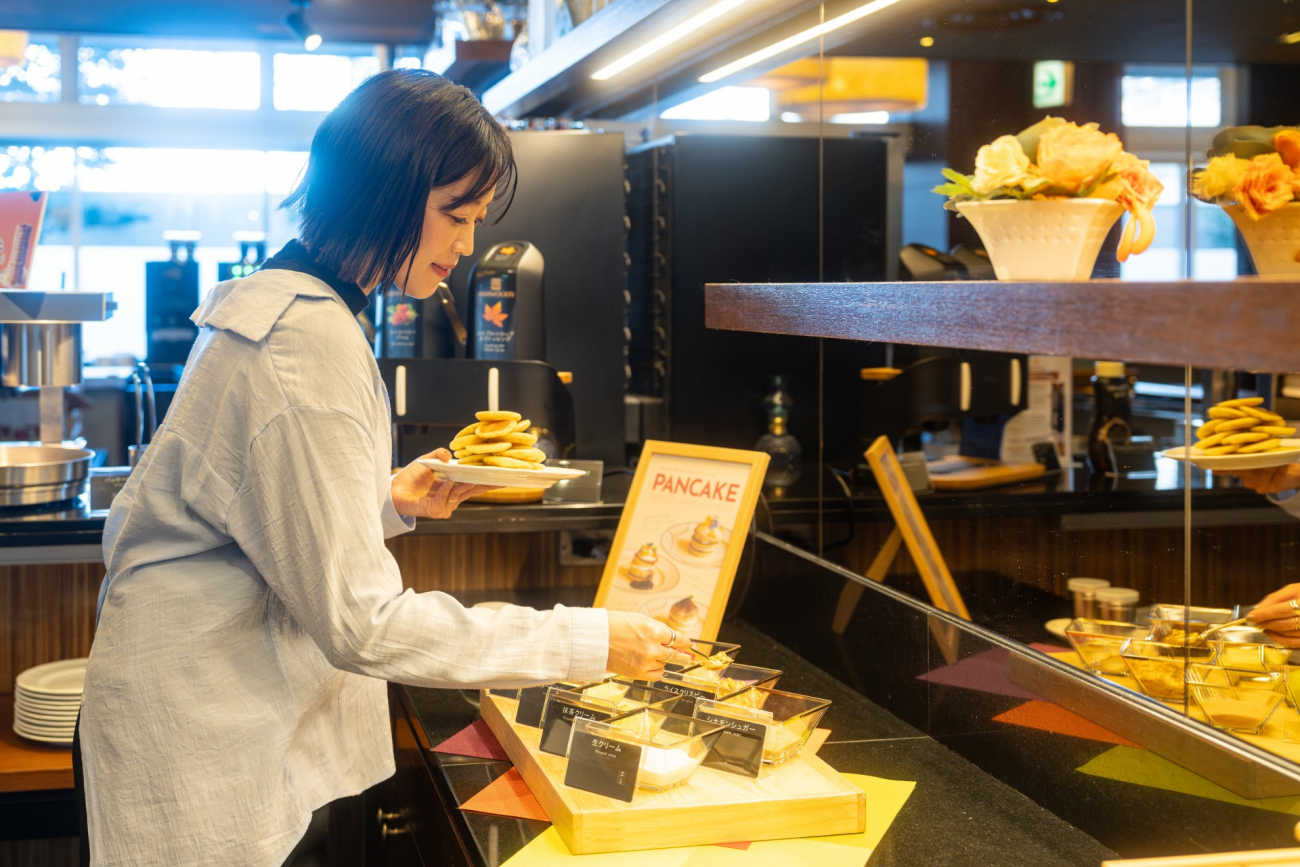 大人気のパンケーキマシーンの焼きたてパンケーキが食べ放題!!