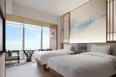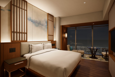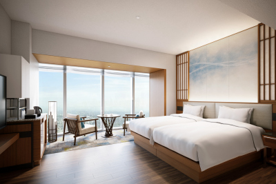 今回の改装は、「光満つ 天空の都」をコンセプトに、当ホテルの最大の魅力である“眺望”を今まで以上に楽しんでいただけるように、窓外から差し込む光を大切にし、窓際のエリアを活かしたインテリアデザインで上質で落ち着きのある空間をご提供します。また、2台のベッドをぴったりと並べて配置したハリウッド・ベッド仕様の客室が新たに登場。広々とした寝心地で安心してお休みいただけるスタイルは、小さなお子様連れのご家族や、ゆったり過ごしたいカップルに特におすすめです。