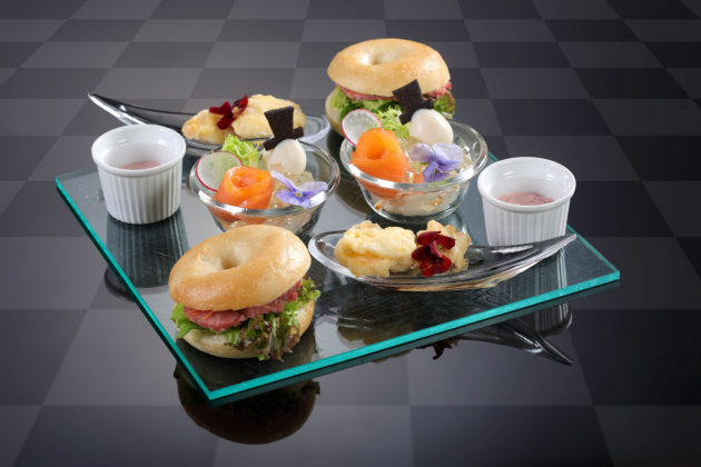 ハンプティ・ダンプティのサラダ / フィッシュフライといちごのディップソース / ローストビーフのベーグルサンド