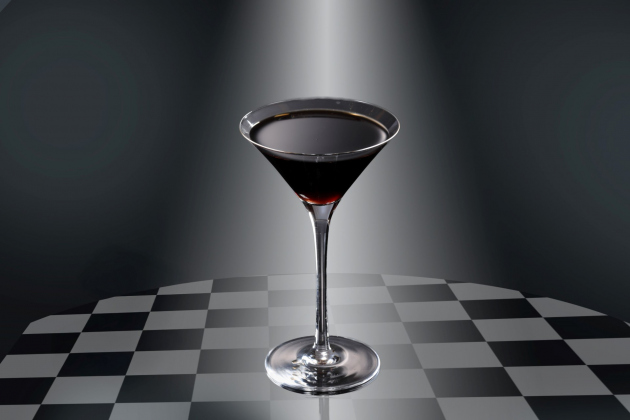 チェシャ猫が月明りの下で微笑む、夜をイメージしたカクテル。