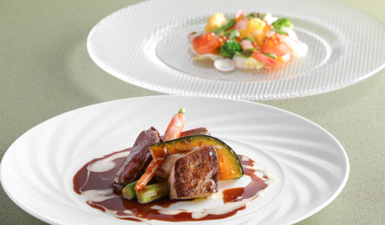 フレンチをベースとした繊細なコースを、和と洋の魅力あふれる寛ぎの空間で、ごゆっくりお愉しみください。