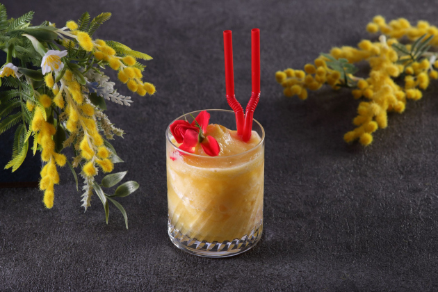 ラムをベースにほろ苦い甘さの金柑リキュールと華やかな香味のエルダーフラワーリキュール、爽やかな酸味のパイナップルジュースなどを合わせたフローズンカクテルです。