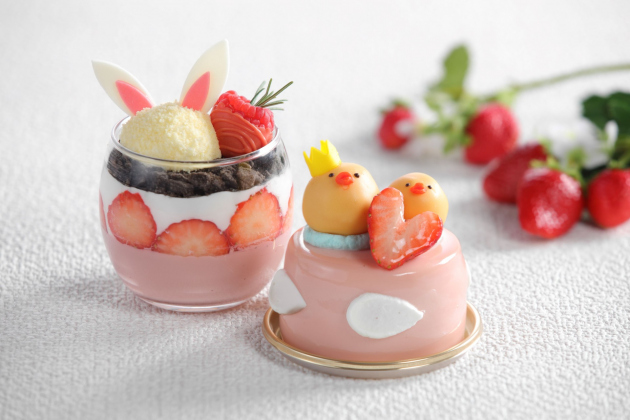 春の訪れを祝うイースターをテーマに、ひよことうさぎをモチーフにしたパステルカラーの可愛らしいスイーツなど、いちごをふんだんに使用した華やかなスイーツを販売します。