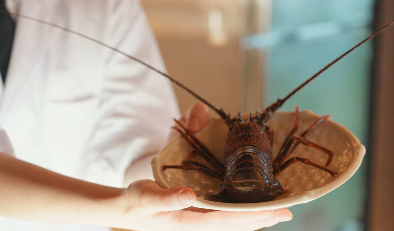鮑、伊勢海老、松阪牛をはじめとした食材などをお客様の目の前で美しい一皿に仕上げます。繊細な技で表現する日本料理の魅力をお愉しみください。
