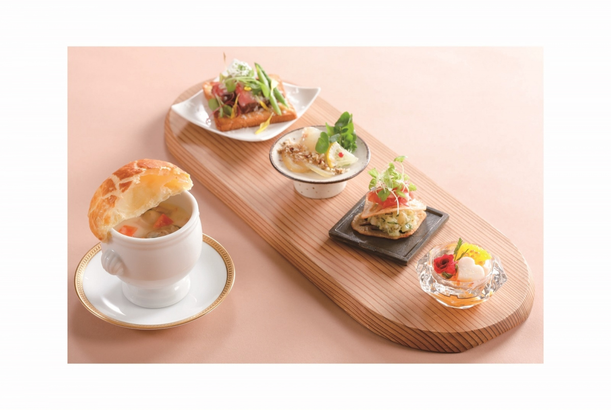 正月からバレンタインデーにかけて、冬のイベントを一度に楽しめるアフタヌーンティーをご用意しました。スタンド上段は「新春」をテーマに2026年の干支「丙午」と門松をモチーフにしたスイーツを、中段は「節分」をテーマに赤鬼と恵方巻に見立てたスイーツを、下段は「バレンタイン」をテーマに、ショコラタルトと淡いピンク色のスイーツを盛り付けました。また、クラムチャウダーのパイ包み焼きなど、冬にぴったりなセイボリーもご用意していますので、スイーツとともにお楽しみいただけます。