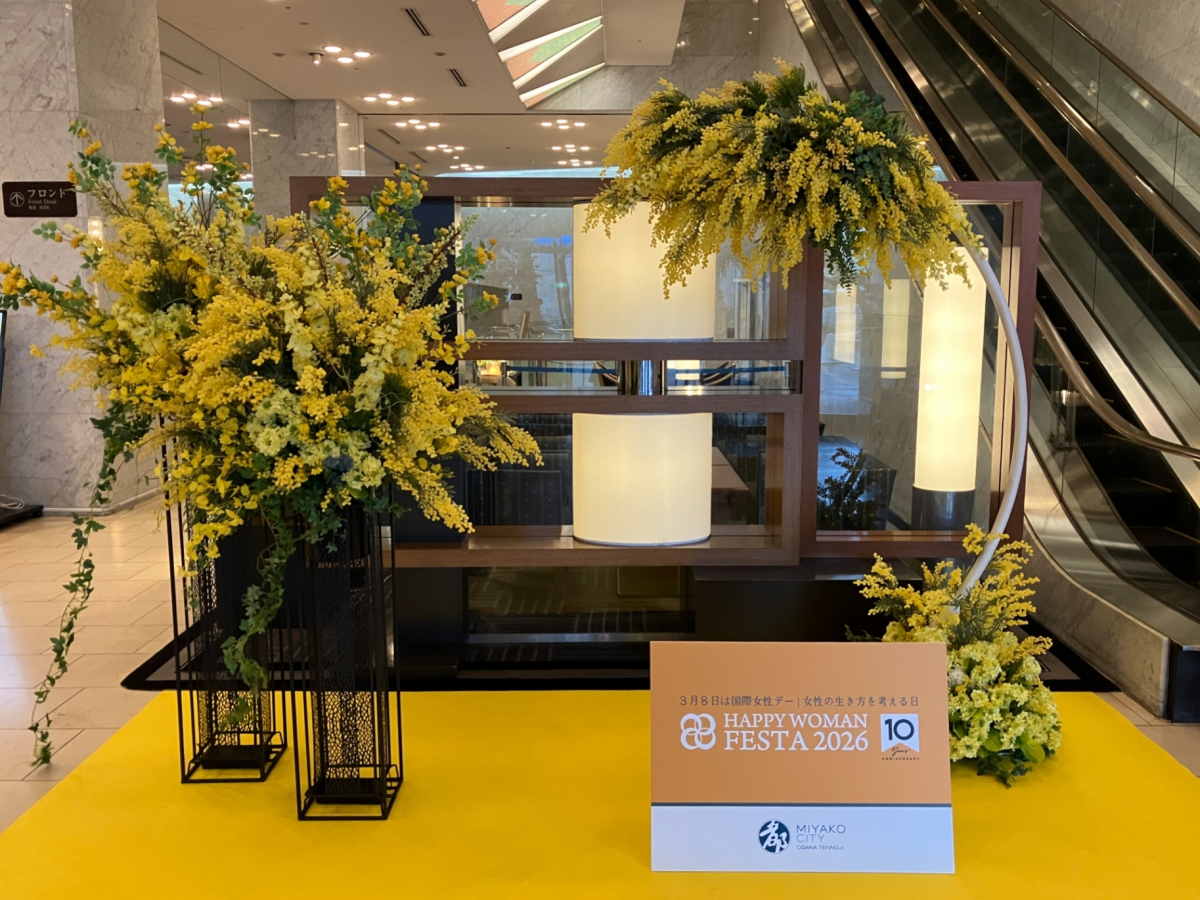 都シティ 大阪天王寺では、女性のエンパワーメントとジェンダー平等の社会実現をめざすHAPPY WOMAN®の活動に賛同し、シンボルカラーのハッピーイエロー(幸せの黄色)の彩りでお迎えします。