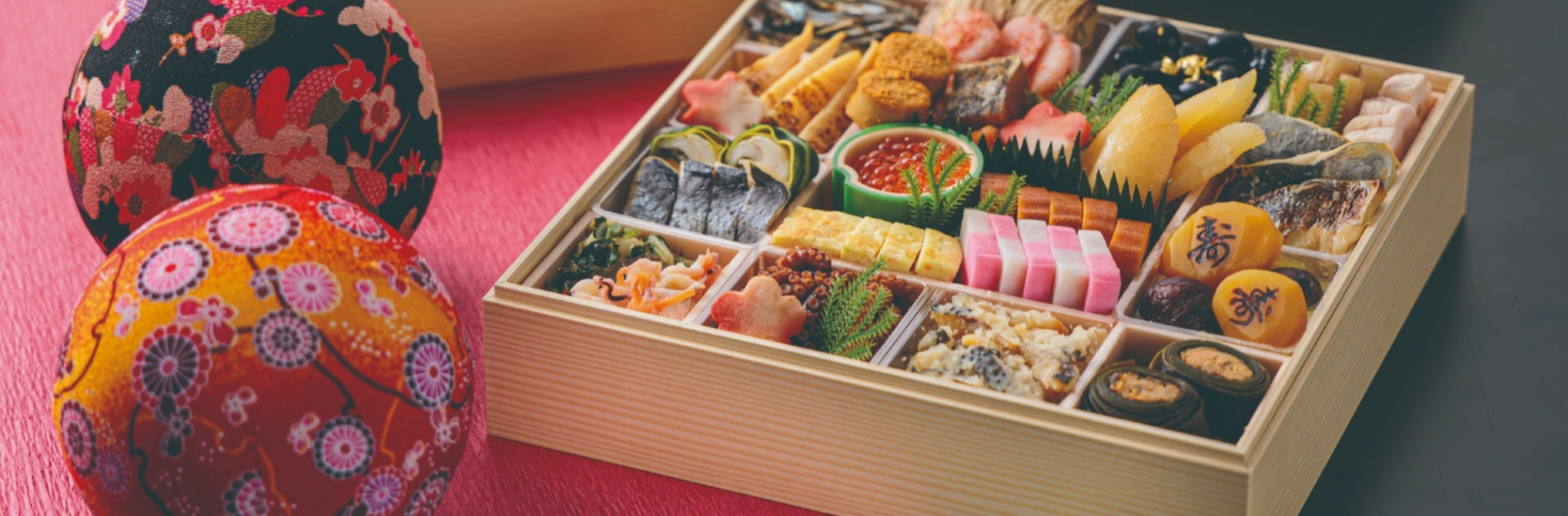 迎春を祝う縁起物や豪華な素材を彩りよく盛り込んだ、ご家族・ご友人など皆様でお召し上がりいただける大きなサイズのおせち料理です。