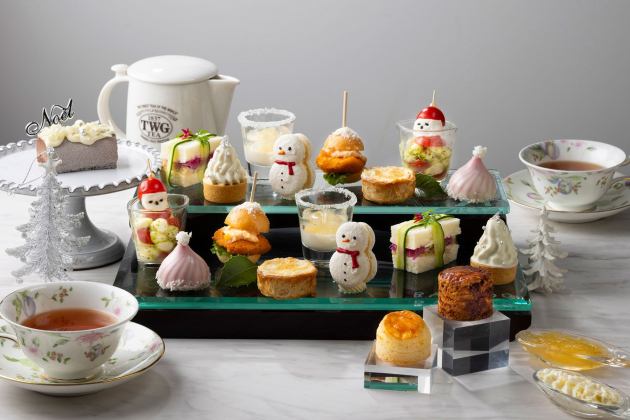 12月からは「クリスマスアフタヌーンティー」が登場。雪化粧をまとったスイーツやセイボリーをお楽しみいただけます。