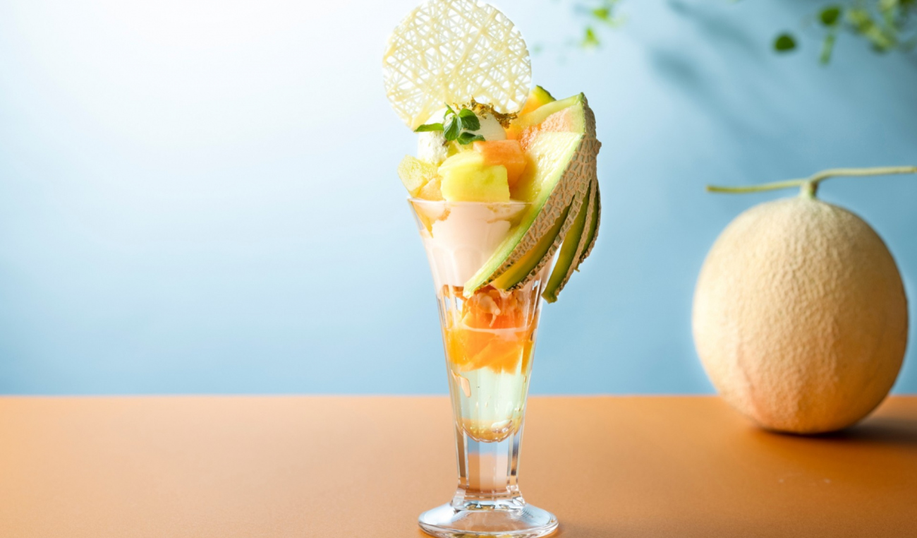 赤肉と青肉のフレッシュメロンがたっぷり。ゼリーやシャーベットでもメロンの魅力をご堪能いただけます。