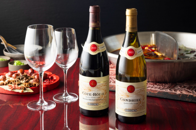 果実味とスパイスが調和する「コート ロティ ブリュヌ エ ブロンド ド ギガル」と、芳醇で華やかな香りの「ギガル コンドリュー」を飲み比べ、火鍋の奥行きをさらに引き立てます。スープの深い味わいともよく調和し、多彩なマリアージュをお愉しみいただけます。