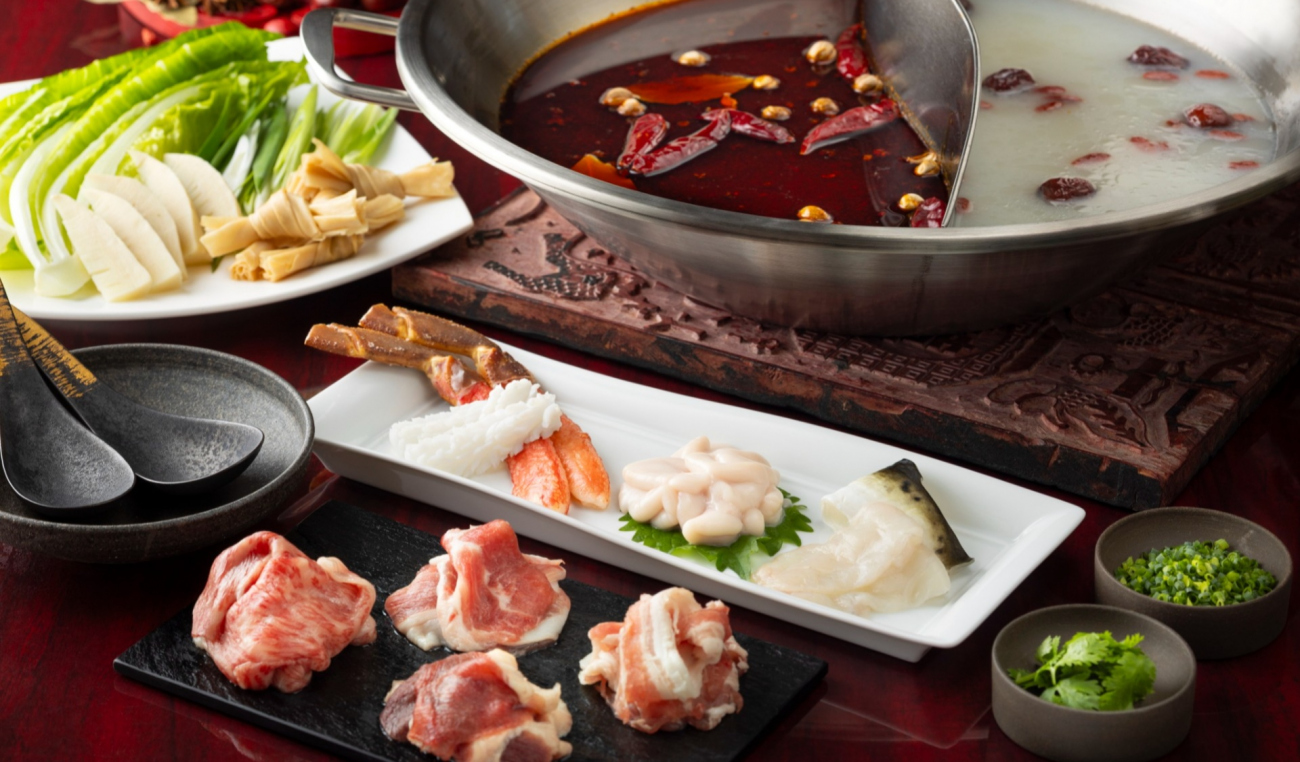 「自家製麻辣醤と四川省産花山椒香る四川麻辣スープ」とお好みの「薬膳スープ」に米沢牛サーロイン、アグー豚、鱈白子、ズワイ蟹、トラフグをくぐらせてお召し上がりください。刺激とまろやかさ、香りとコクが交互に押し寄せる、冬ならではの贅沢な体験をお楽しみいただけます。